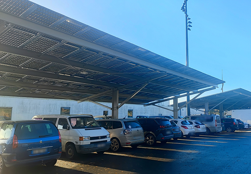 Pour aller encore plus loin dans la transition écologique, Douarnenez Communauté a intégré des ombrières photovoltaïques sur le parking de la Plaine des sports. Demandées dans le cadre de la loi APER relative à l’accélération de la production d’énergies renouvelables instaurant l’installation d’ombrières photovoltaïques sur les parkings de surface supérieur à 1500m2, ces structures offrent de l’ombre aux véhicules et produisent de l’électricité verte. Ainsi, elles permettent de réduire l’empreinte carbone et les coûts de fonctionnement. Ce dispositif illustre la volonté de la collectivité de conjuguer innovation, confort et responsabilité environnementale.