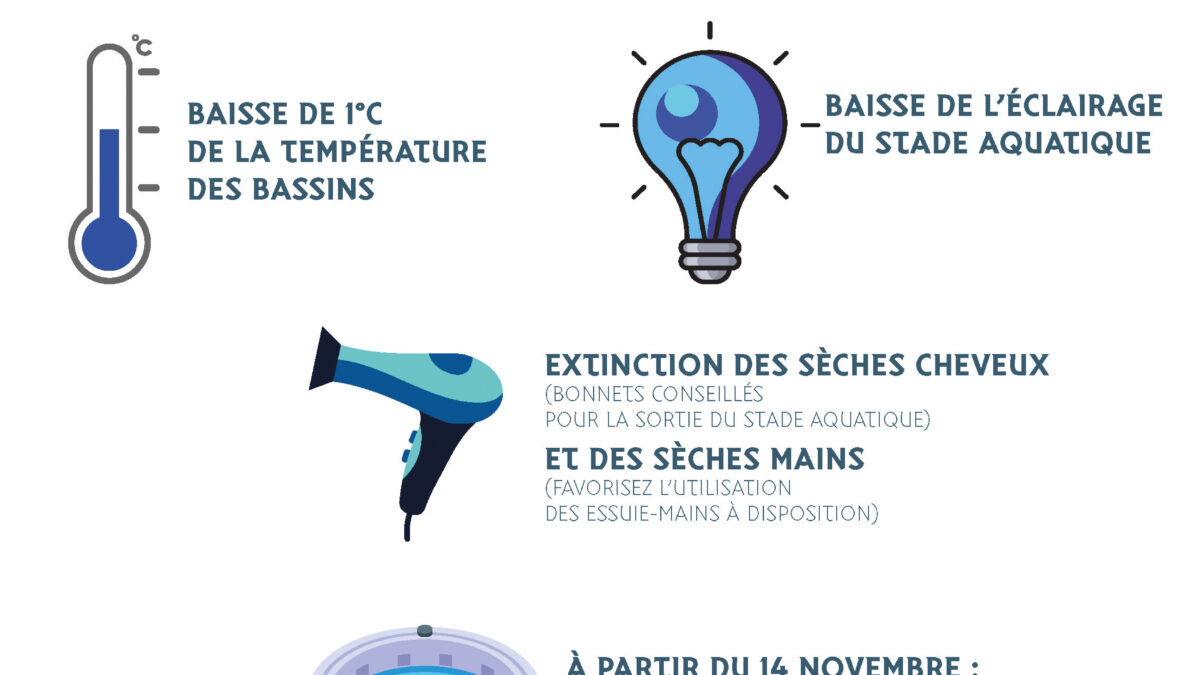 Dans le cadre des annonces gouvernementales liées au plan de sobriété et d’économies d’énergie, le Stade aquatique met en place des actions pour réduire ses consommations.